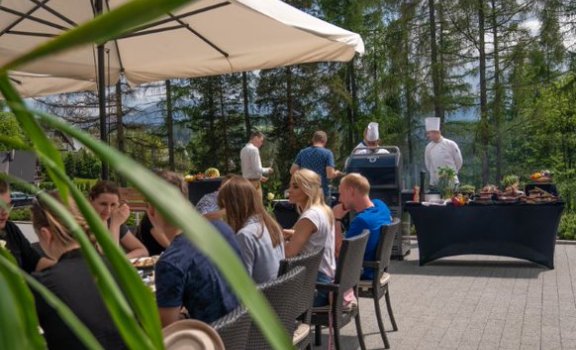 The HARNAŚ Hotel is a part of BUKOVINA Resort, which includes a fully equipped congress/business centre meeting top European standards and accommodating up to 600 people. The centre covers an area of 860 m², with 147 m² of conference facilities located at the HARNAŚ Hotel. Organisers of training events, seminars, and other business meetings have at their disposal 80m² and 25m² rooms as well as a 42 m² club room with a minibar and TV facilities, designed for small business-related meetings. The HARNAŚ also offers the organisation of corporate events at its WIDOK restaurant and in the Lobby Bar. The restaurant serves natural cuisine based on regional products, and the Lobby Bar – a selection of the highest quality beverages. Apart from professional conference facilities, BUKOVINA Resort guarantees excellent service, high-speed internet access and an entertainment zone with the Bear Bar, bowling and billiard facilities, and a disco. BUKOVINA Resort organises outdoor events with food, such as sleigh rides, campfires, trips with a mountain guide, and highland nights with a story-teller and a folk music band. The Resort also organises a variety of team-building events such as Swimming Pool Nights – fun in thermal water with club music and a DJ, among colourful lights. It can also organise skiing competitions and events involving rafting, quads, scooters, off-road vehicles, canoeing on the Dunajec River, survival, paintball, Nordic walking, water aerobics and many other options. Taylor-made offers allow the creation of unique and original scenarios for even the most demanding events. All the above is offered in close vicinity to the Tatra National Park and the Tatra Mountains.