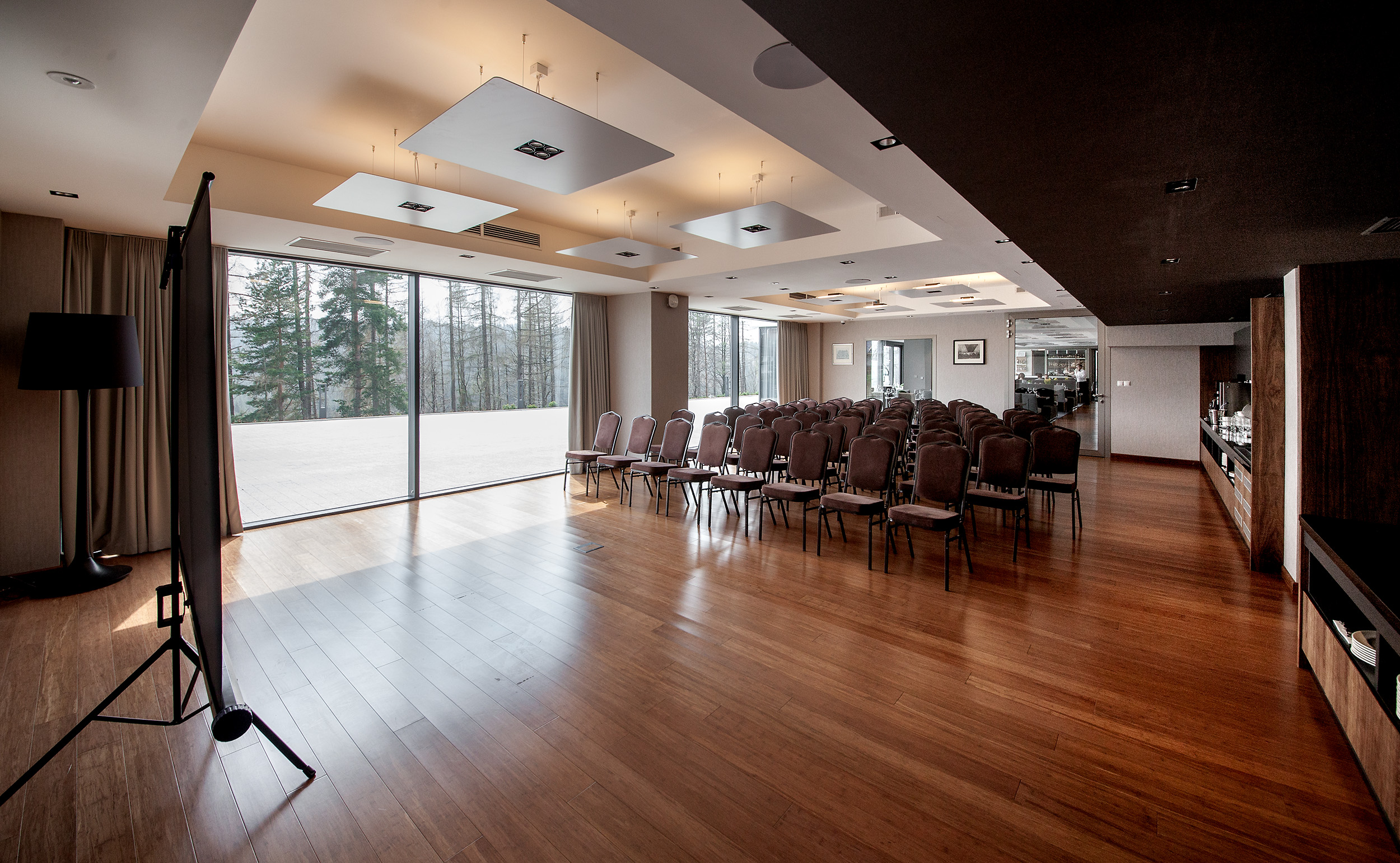 Rano na tej sali delektujecie się niespiesznym śniadaniem. A po południu i wieczorem aranżujemy ją na komfortową salę na szkolenie lub event dla Twojej firmy. Cała ściana od strony Tatr jest przeszklona. Z sali jest też bezpośrednie wyjście na ogromny taras z widokiem na góry.