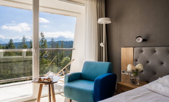 Pamiętasz te niezadowolone spojrzenia i pretensje, że ktoś dostał pokój z lepszym widokiem? W Harnasiu nie ma tego problemu. Hotel został tak zaprojektowany, że wszystkie 72 pokoje mają okna z bezpośrednim widokiem na panoramę Tatr Wysokich. A że są od południowej strony, możecie cieszyć się tatrzańskim słońcem, pijąc kawę na balkonie.