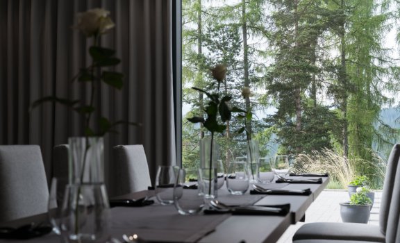 Nasza sala restauracyjna z tarasem oferuje niezwykłe widoki na panoramę Tatr i otaczające hotel świerkowe lasy Tatrzańskiego Parku Narodowego. To idealne miejsce zarówno na kameralne przyjęcia dla kilku gości, jak i większe uroczystości, które mogą trwać do późnych godzin popołudniowych.