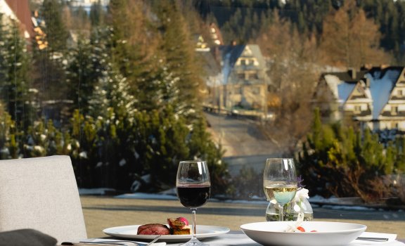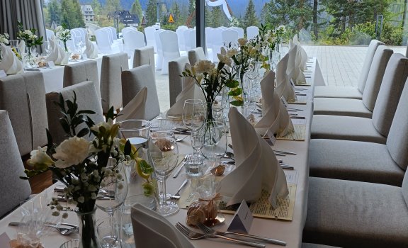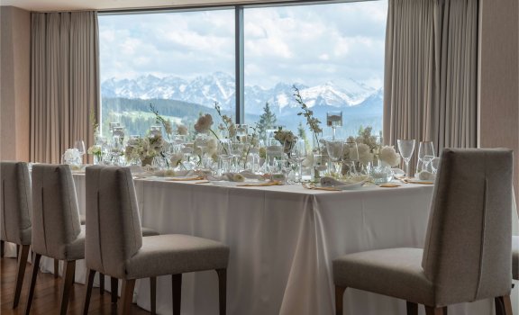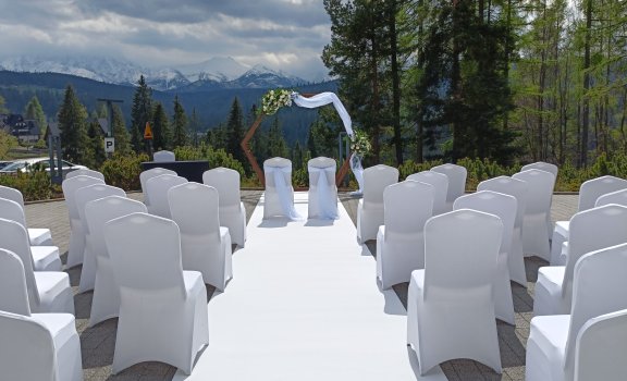 Tym, co mocno wyróżnia naszą ofertę weselną i ślubną, jest możliwość zorganizowania ceremonii cywilnej/humanistycznej. Wnętrza naszej eleganckiej sali restauracyjnej lub taras zewnętrzny z zapierającym dech widokiem na panoramę Tatr i świerkowe lasy Tatrzańskiego Parku Narodowego, tworzą perfekcyjny, unikalny anturaż. Powiedzcie sobie „tak” w magicznej scenerii, spełniając swoje wielkie marzenie.