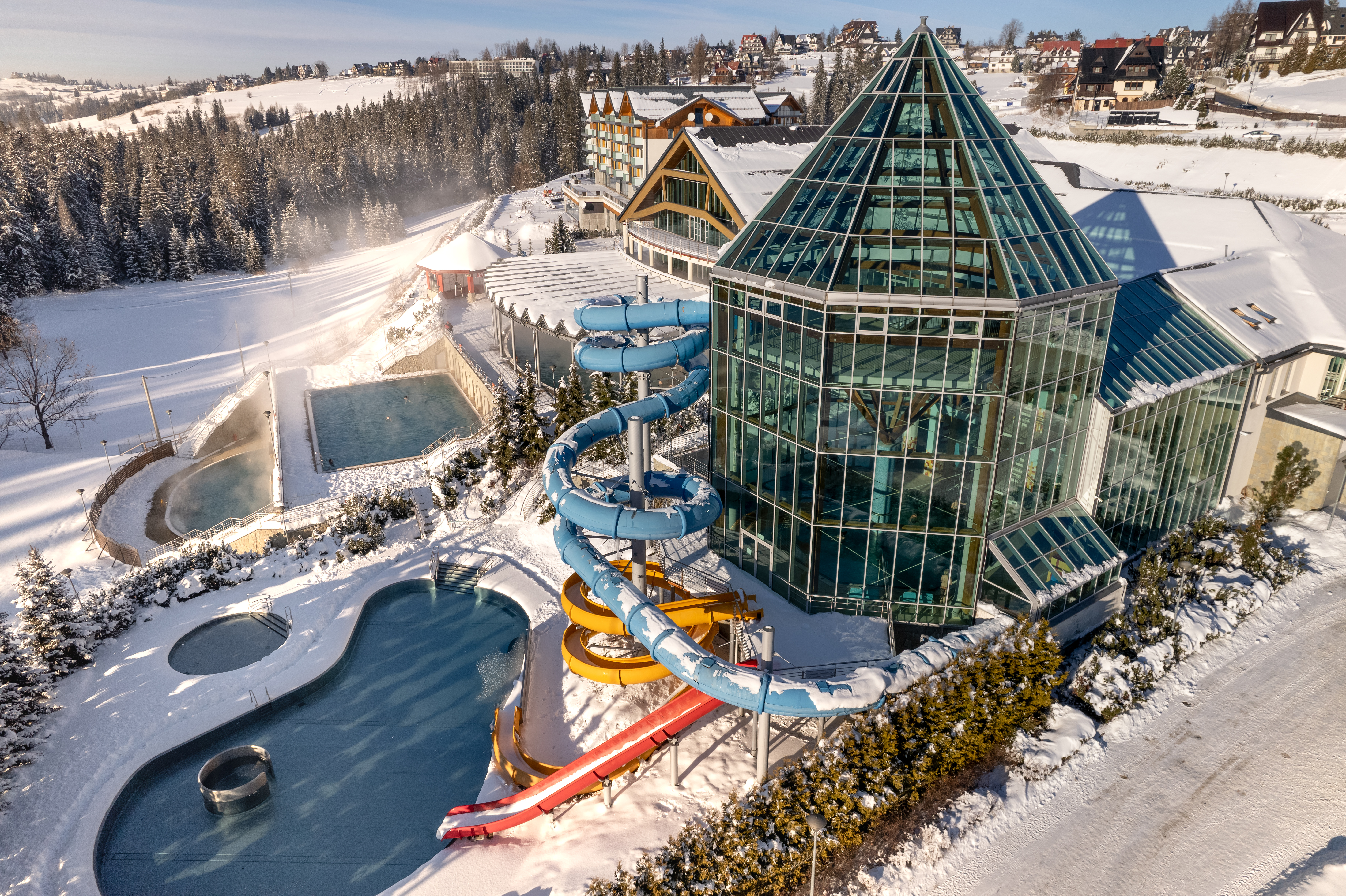 W Termach BUKOVINA znajdziesz baseny rekreacyjne i pływackie – zarówno wewnątrz, jak i na zewnątrz, położonych z dala od zgiełku w otoczeniu Tatrzańskiego Parku Narodowego. W każdym z nich możesz poczuć magię natury i cieszyć się kojącymi właściwościami wody termalnej, której temperatura waha się od 30 do 38°C. Skorzystasz tu z licznych saun, łaźni parowych, w których znajdziesz chwilę tylko dla siebie. Czekają tu na Ciebie również fantastyczne jacuzzi i setki metrów szalonych, wodnych zjeżdżalni (przy pobycie w pokoju typu Panoramic Mountainview / Skysuite / Harnaś Suite - nielimitowany wstęp do Term BUKOVINA).